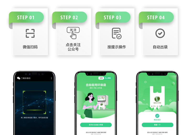 自助取袋機(jī)/環(huán)保袋發(fā)放機(jī)可以自助領(lǐng)取環(huán)保袋,居民可以免費(fèi)領(lǐng),操作和無人自助售貨機(jī)一樣的。拿出手機(jī)掃碼一下二維碼,機(jī)器自動吐出環(huán)保袋。生活上對居民的出行提供了很大的便利,也通過免費(fèi)領(lǐng)的方式增強(qiáng)了人們生活中綠色出行、低碳環(huán)保的意識。大尺寸的觸摸屏和環(huán)保袋同時(shí)也是廣告載體,能夠?yàn)楦鱾(gè)區(qū)域商戶定制設(shè)計(jì)不同廣告,給人視覺感受。每一個(gè)機(jī)器和購物袋在使用過程中相當(dāng)于人形廣告牌。